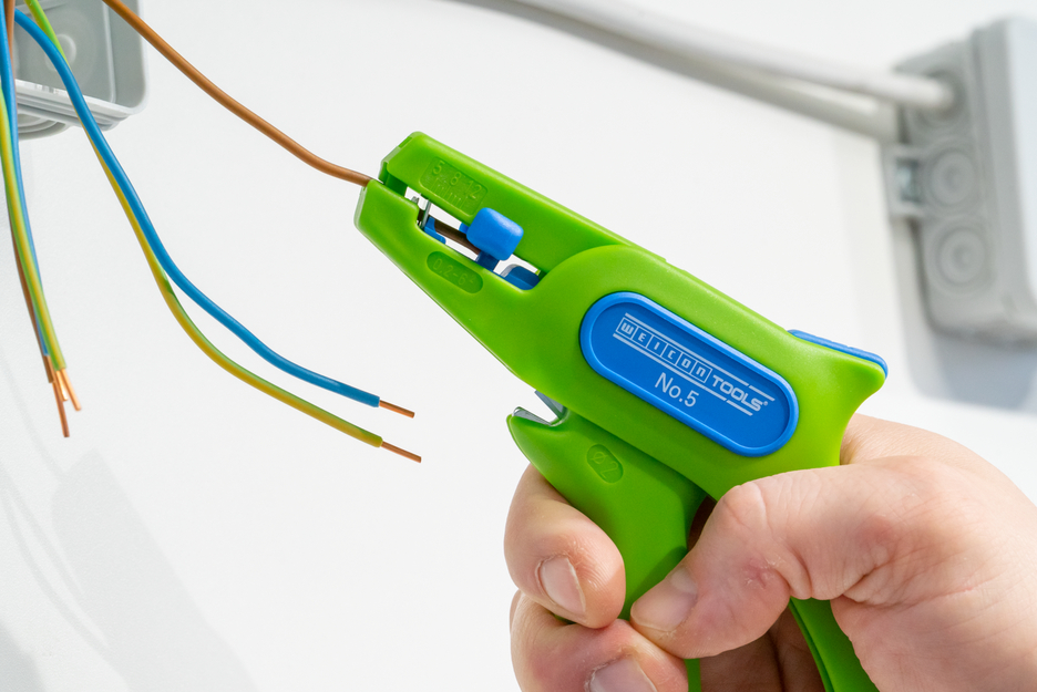 Die WEICON TOOLS Green Line ist eine ganz besondere Produktlinie, die speziell auf Nachhaltigkeit und Schonung der Ressourcen ausgerichtet ist. Die Green Line umfasst Abisolierwerkzeuge, die aus bis zu 97 % nachwachsenden und natürlichen Rohstoffen bestehen. Die WEICON-Abisolierzange No. 5 kann alle flexiblen und massiven Leiter von 0,2 - 6,0 mm² abisolieren. Die Zange verfügt über einen verstellbaren Längenanschlag von 5 - 12 mm. Der Längenanschlag kann bei Bedarf herausgenommen werden. Ein gut zugänglicher Seitenschneider ist in das Werkzeug integriert, der bis zu einem Kabeldurchmesser von 2 mm genutzt werden kann. Die Klingen sind wechselbar. Das geringe Gewicht der No.5 sorgt für ein ermüdungsfreies Arbeiten.