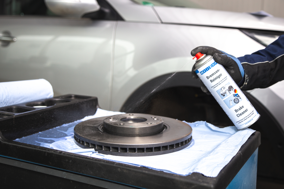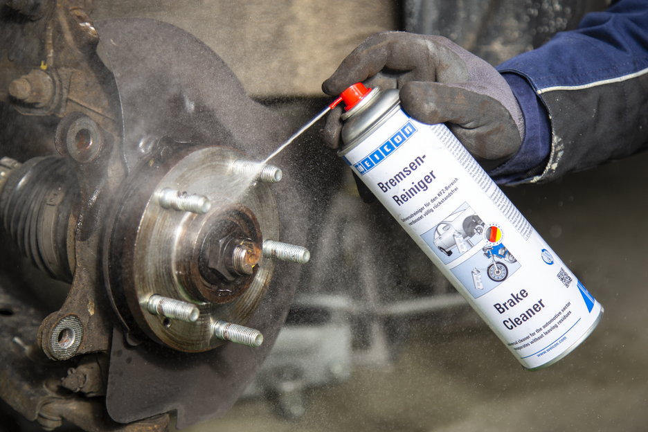 WEICON Bremsenreiniger ist ein Universalreiniger für die Automobilbranche, der reinigt, entfettet und völlig rückstandsfrei verdunstet. WEICON Bremsenreiniger entfettet und reinigt schnell und mühelos Metalle, Glas und viele Kunststoffe und entfernt öl- und fetthaltige Verschmutzungen und Rückstände. WEICON Bremsenreiniger kann an Bremsen (Trommel- und Scheibenbremsen, Belägen, Bremsklötzen, Zylindern, Federn und Buchsen), an Kupplungen (Kupplungsbelägen und -teilen) oder an Motorteilen (Vergasern, Benzin- und Ölpumpen, Getrieben etc.) zum Einsatz kommen.