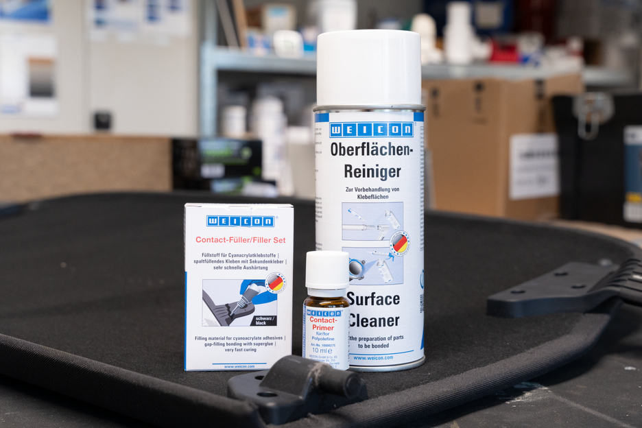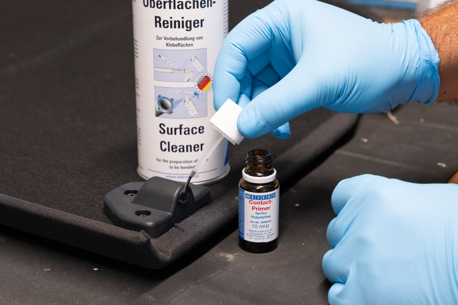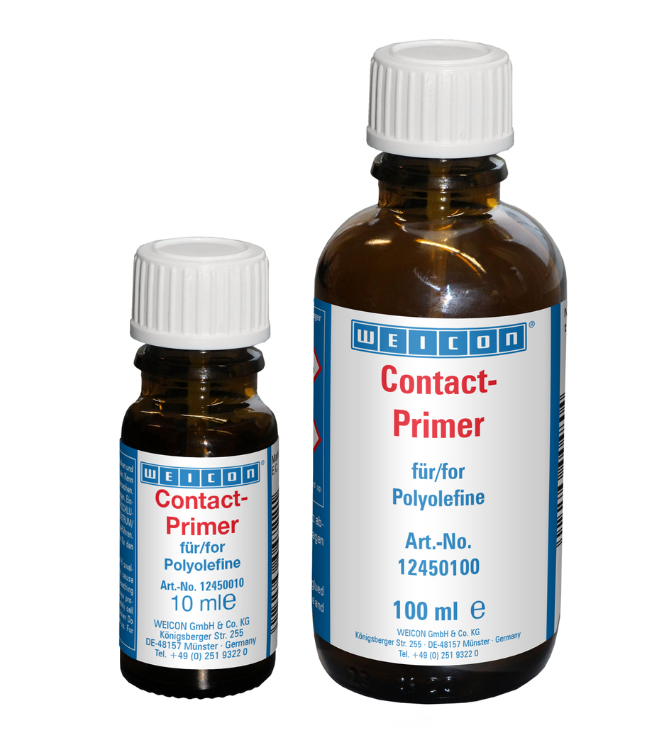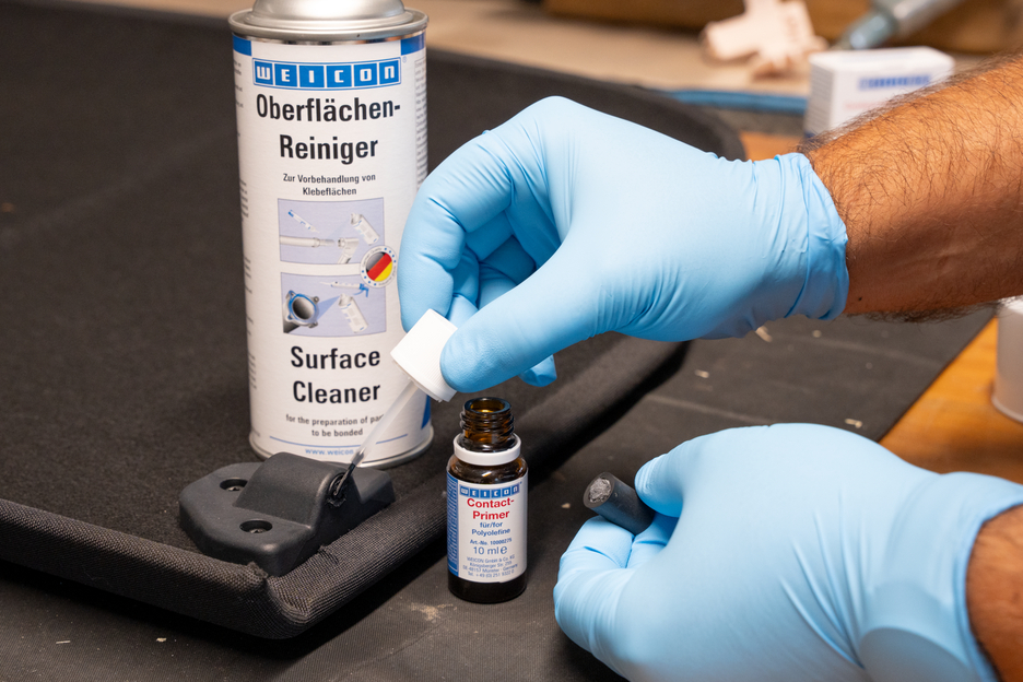 Without pre-treatment, many plastics cannot be bonded or bond only under certain conditions. When these plastics are pre-treated with WEICON Contact Primer, their surface structure changes. Thereby, the joining of materials like polyethylene (PE) and polypropylene (PP), belonging to the polyolefine group, is made possible. Even modern thermoplastic elastomers (TPE), PTFE and related plastics as well as silicones can be bonded, when pre-treated with WEICON Contact Primer.