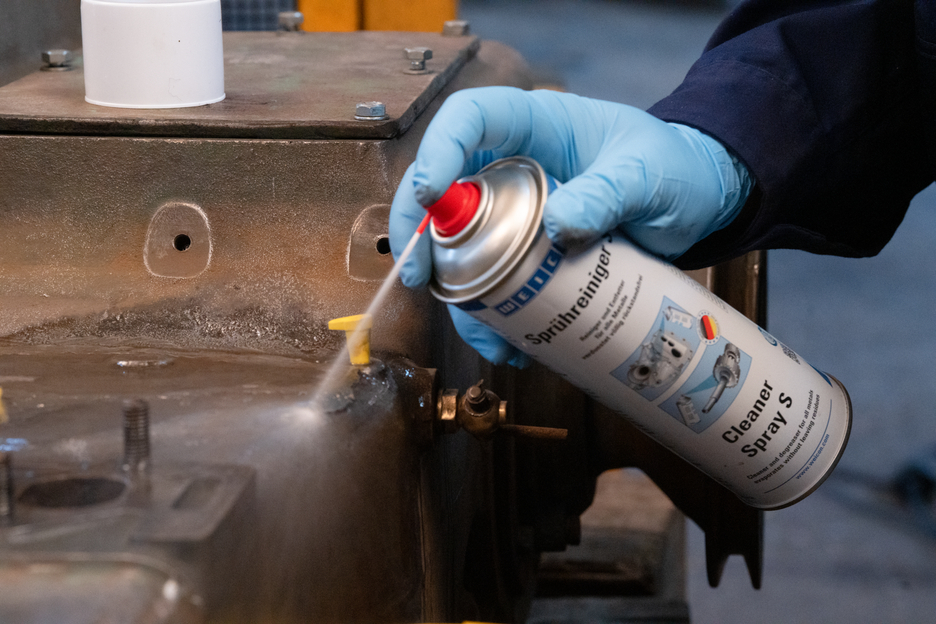 WEICON Cleaner Spray S removes oily and greasy soiling from all metals as well as from ceramics, glass and most plastics. It can, however, attack the surface of thermoplastics such as PVC, Plexiglas, polystyrene and single layers of paint. WEICON Cleaner S evaporates quickly and, in contrast to conventional thinners, without leaving residues. It can be used for cleaning and degreasing before priming and painting, for cleaning machine parts, or before other WEICON products are applied to surfaces where a greasy underground would impair their effect.