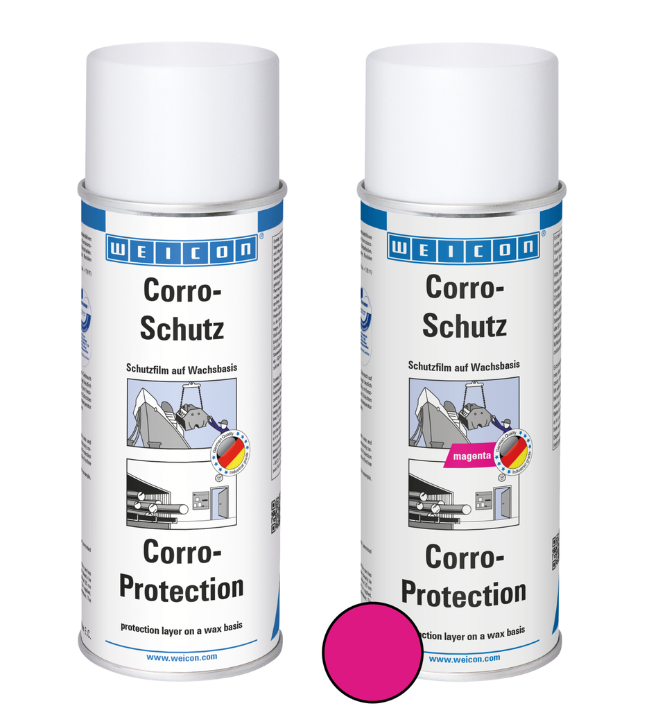 WEICON Corro-Protection is a protective film approved by the German TÜV. It permanently preserves metal tools and precision components with a dry and waxy layer. WEICON Corro-Protection can be used as safe corrosion protection for bare, unpainted metal parts, for the indoor storage of work pieces, as corrosion protection during overseas transport and for the conservation of tools and precision components. The protective film can be removed easily (e.g. with WEICON Cleaner S).