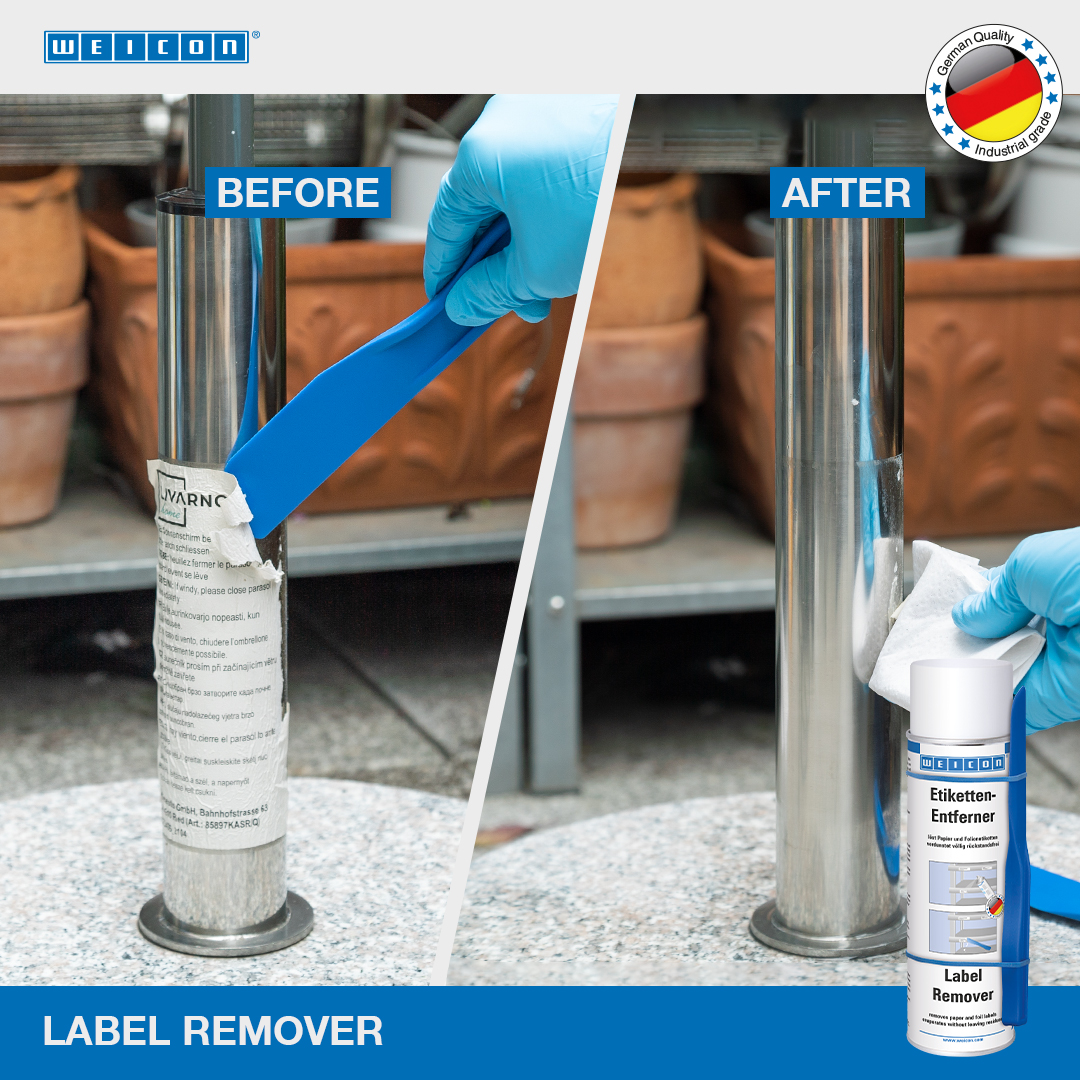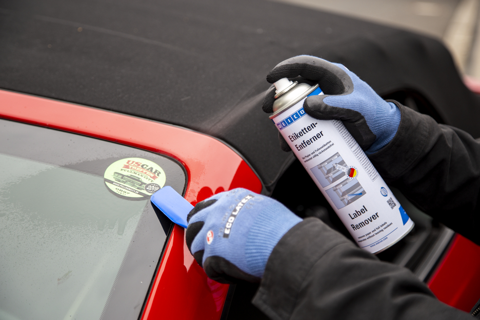WEICON Label Remover quickly and easily removes paper labels and residues of acrylate and caoutchouc-based pressure-sensitive adhesives. WEICON Label Remover is suitable for many surfaces such as glass, metal, wood, foil and plastic. WEICON Label Remover easily and safely removes adhesive labels, price tags (e.g. incorrect labels), address and product stickers, identification labels, and label residues. It also removes adhesive residues from foil labels such as vignettes on car windshields.