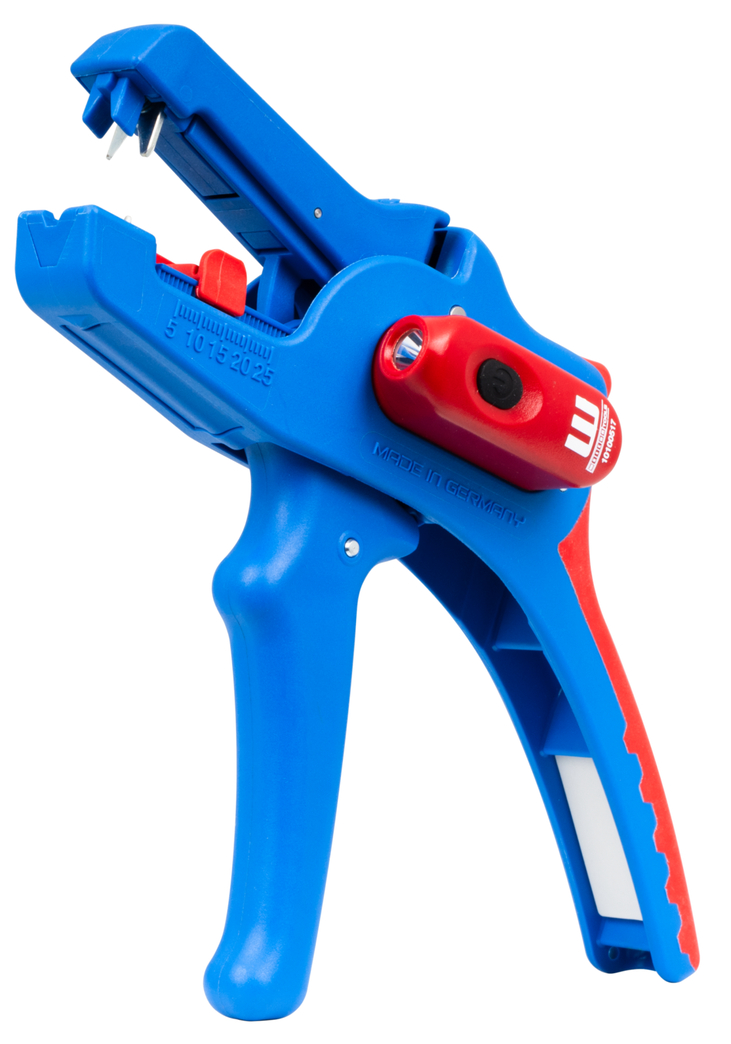 the integrated LED light ensures a well-illuminated working area that allows you to work safely with both hands I powerful and rechargeable lithium battery with 180 mAh I 2 hours of bright light (at level 2) after a charging time of 40 minutes I three brightness settings with up to 250 lumens, light colour: 6500K I dustproof, splash-resistant and impact-resistant housing made of polycarbonate, tested acc. to IP65 protection code I can be used with many WEICON TOOLS wire strippers