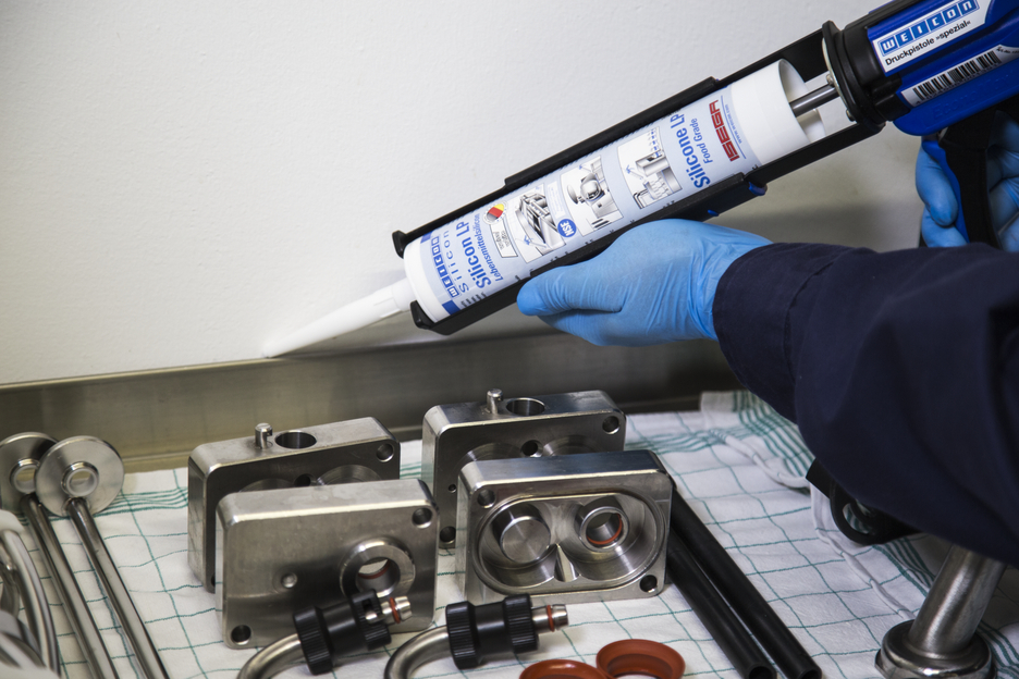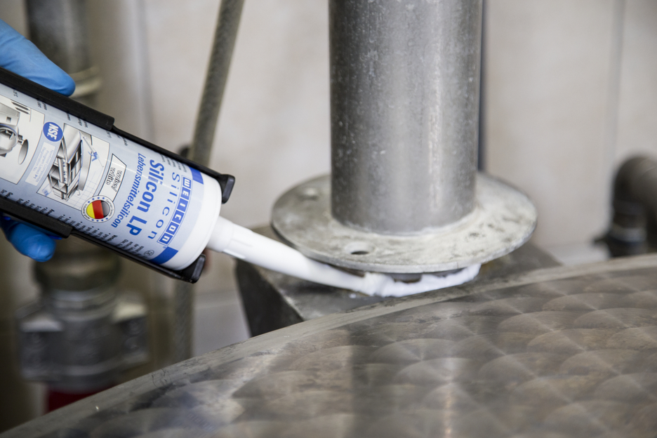 WEICON Silicone LP is an acetoxy curing and permanently elastic adhesive and sealant. It is resistant to chemicals, ageing, weathering and UV radiation and has a high temperature resistance up to +180 °C (+365 °F). It adheres very well to steel, aluminium, glass, plastics and many other materials. Silicone LP was developed specially for use in sensitive areas. It can be used as sealant in the food and drinking water sector, for example in dairies, slaughterhouses, in the food and beverage production or in canteen kitchens. Tested by the Ruhr Region Institute of Hygiene ("Hygiene-Institut des Ruhrgebiets”) according to the Guideline for Hygienic Assessment of Organic Materials in Contact with Drinking Water (KTW Guideline) by the Federal Environment Agency.