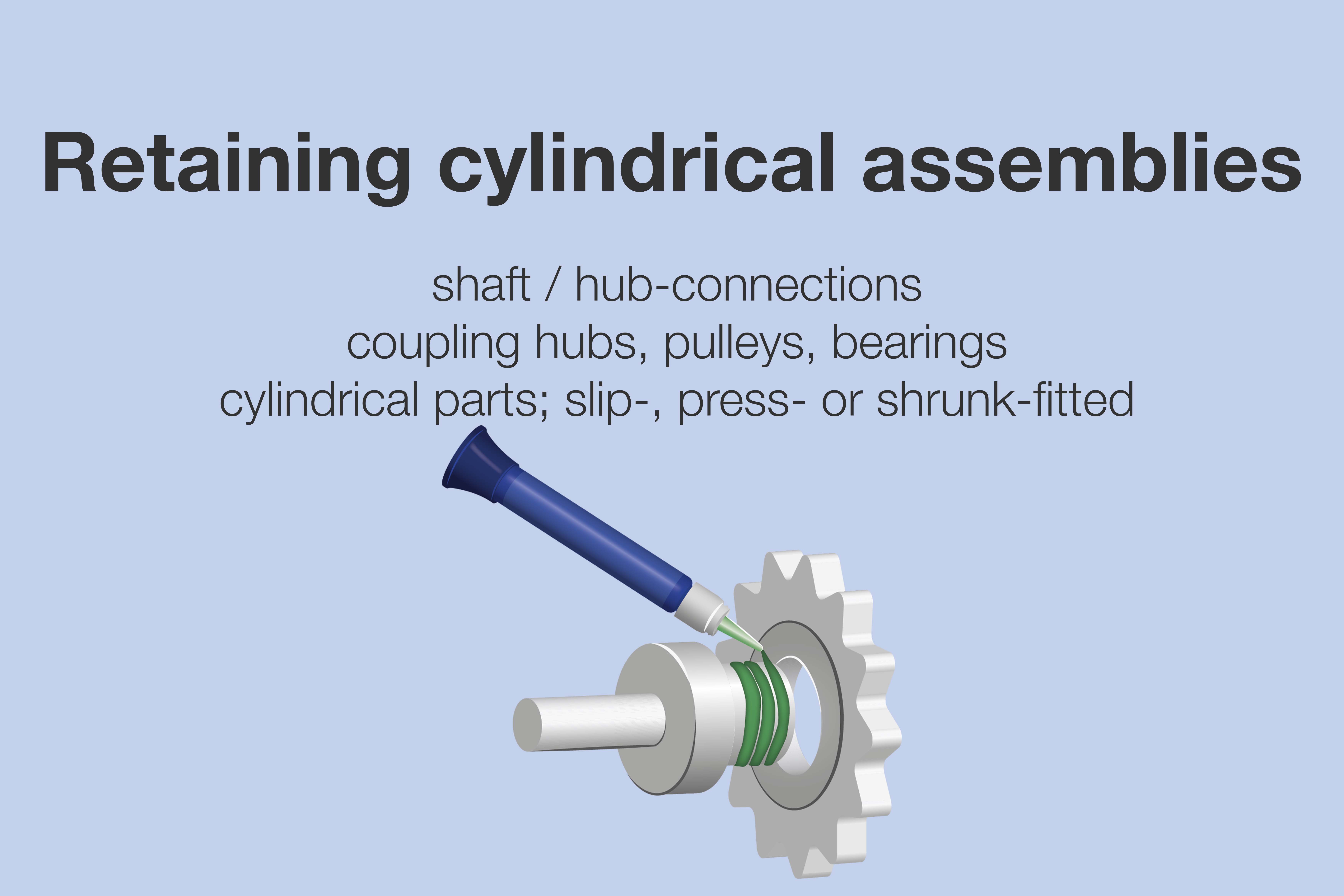 The products for locking threads and stud bolts are suitable for screws and nuts as well as stud bolts, while the pipe sealants are suitable for threaded connections, hydraulic and pneumatic systems. For shaft and hub connections, pulleys, bearings or cylindrical parts in slip, press and shrink-fit applications, it is best to use our products for retaining cylindrical assemblies. For flanges, cases and lids, our flange sealing/gasketing products are best suited.