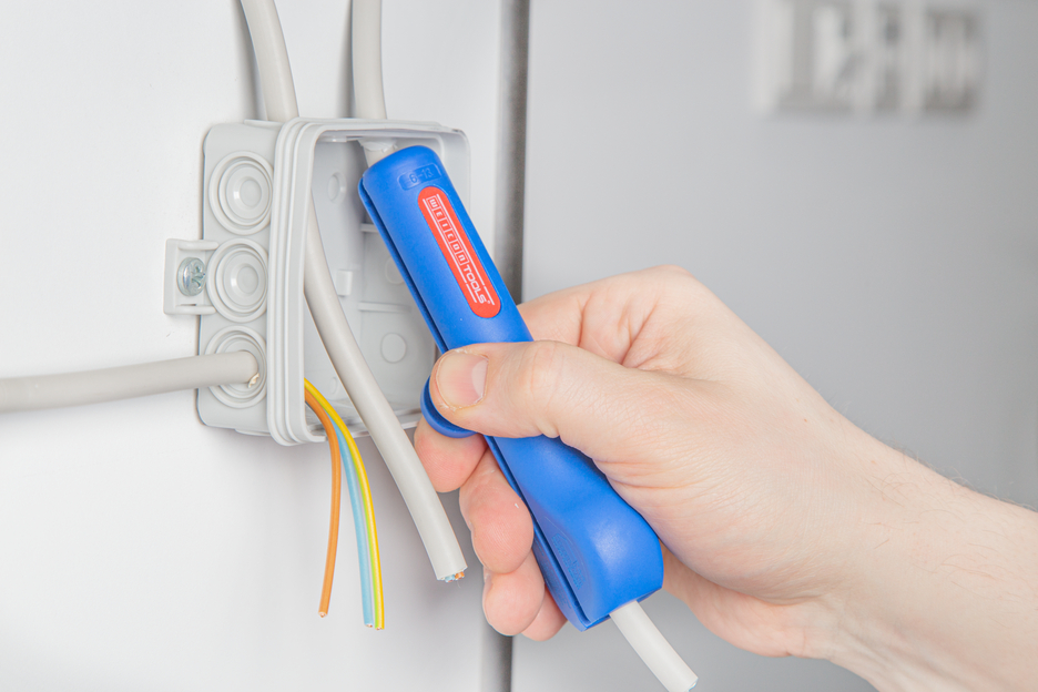 The Round Cable Stripper No. 13 enables fast and convenient stripping of all common round and wet room cables with a diameter of 6.0 - 13.0 mm (e.g. NYM cables 3 x 1.5 mm² to 5 x 2.5mm²). Adjusting the cutting depth manually is not necessary. The new working range is thus also suitable for smaller wire diameters from 6 mm, such as 3 x 0.75 mm². Thanks to the ergonomic handle shape, the tool is particularly comfortable to use. The distinctive handle of the Round Cable Stripper No. 13 ensures a safe, non-slip grip. This helps to make daily work easier and also improves work safety. The rounded and space-savingtool head perfectly matches the modern wall box geometry. The longer shape makes access even easier when stripping in deep-set cavity wall boxes and spaces difficult to reach. Due to the new blade arrangement, clogging of the electro-galvanised knives caused by residue of cable sheaths is prevented. For possible small series or for producing wires with the samestrip length, a length stop is integrated in the housing. A fastening clip ensures safe storage of the tool.