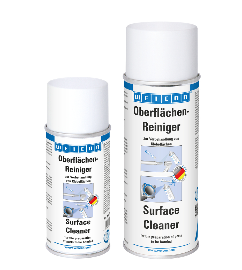 WEICON Surface Cleaner is used for the cleaning and degreasing of surfaces to be joined or sealed with WEICON Adhesives and Sealants. Surface Cleaner can be used on materials like metal, glass, ceramics and most plastics, and evaporates without residues. Check surface compatibility prior to use. WEICON Surface Cleaner can also be used to clean and degrease machine components in the course of maintenance works.
