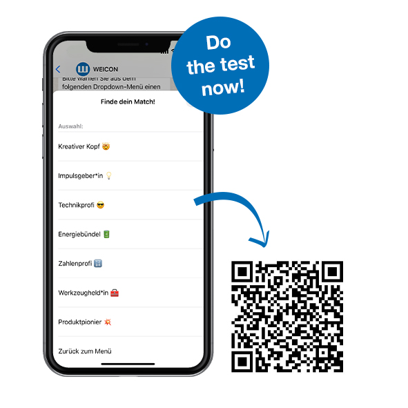 Scan the QR code or go directly to the chat and write: "To the type test".