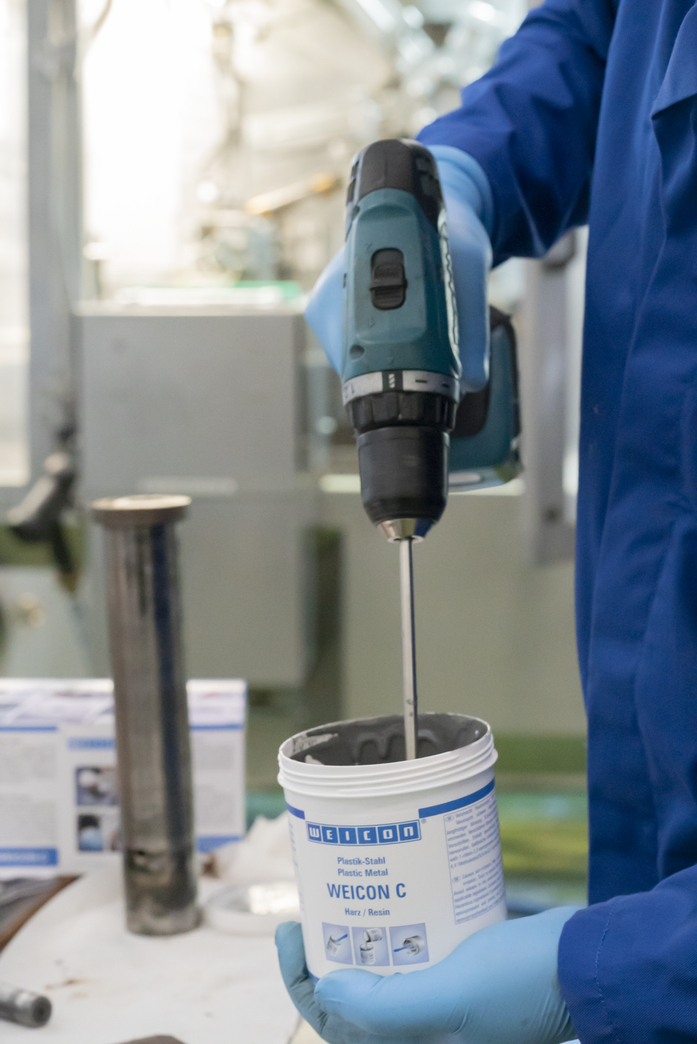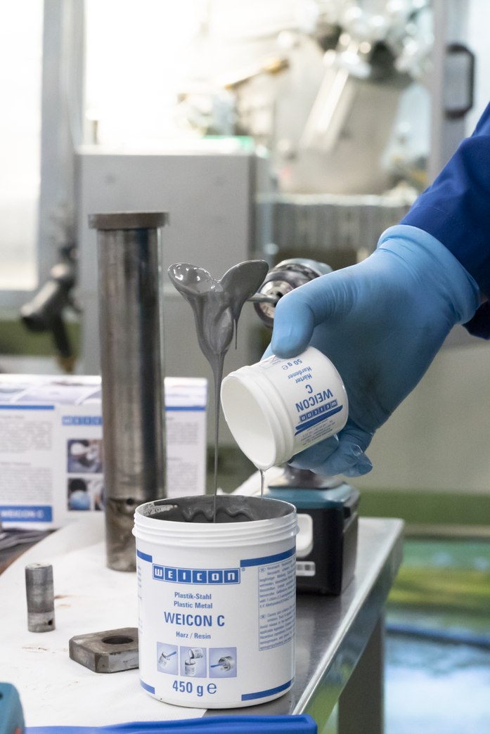 WEICON C is a temperature-resistant and flowable epoxy resin system especially for industrial use. The adhesive is non-corrosive, anti-magnetic and cures practically without shrinkage. WEICON C is particularly suitable as an adhesive for large-scale applications, for pouring out moulds and for the production of fixing devices and tools (e.g. injection moulds). It can be used in the tool and mould making sector as well as in many other industrial areas subjected to high thermal stress.