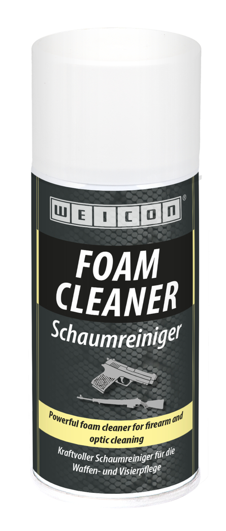 Gun Foam Cleaner is a powerful universal cleaner for residue-free cleaning of rifles, handguns, sporting firearms, optics, rifle scopes and accessories. The cleaner reliably removes grease, fingerprints, dirt, mud splashes and residue from the bolt, stock, grip, barrel, magazine and many other parts. The special cleaner cleans a wide variety of surfaces and materials, such as metal, plastic, glass, wood, leather and nylon. It is also suitable for painted and coated surfaces. Its high material compatibility* and high effectiveness ensure gentle and very efficient cleaning. The cleaner is free from phosphates and formaldehyde and contains no corrosive or caustic additives. *For safety reasons, test material compatibility on an inconspicuous area before use.