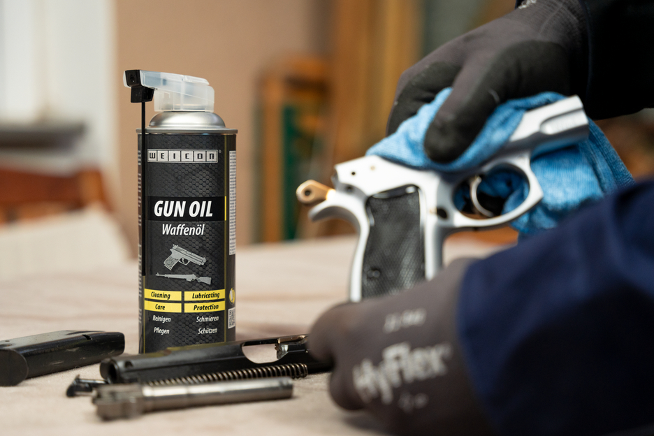 WEICON Gun Oil is used for the maintenance and care of all types of handguns, rifles and sporting guns. Thanks to a special formula and excellent creeping properties, this multifunctional product combines corrosion protection, water displacement, lubrication, preservation and cleaning in one product. WEICON Gun Oil protects and maintains all types of firearms and keeps them in working order. It keeps the mechanics sliding and running smoothly. It has very good creeping and lubricating properties. It displaces moisture, penetrates rust and provides long-lasting protection for surfaces and parts. The oil eliminates squeaking and creaking noises. WEICON Gun Oil cleans dirty metal surfaces and leaves behind a long-lasting, ultra-thin film that does not smear or stick and does not attract dust. It removes powder, lead, tombac, copper and nickel residues.