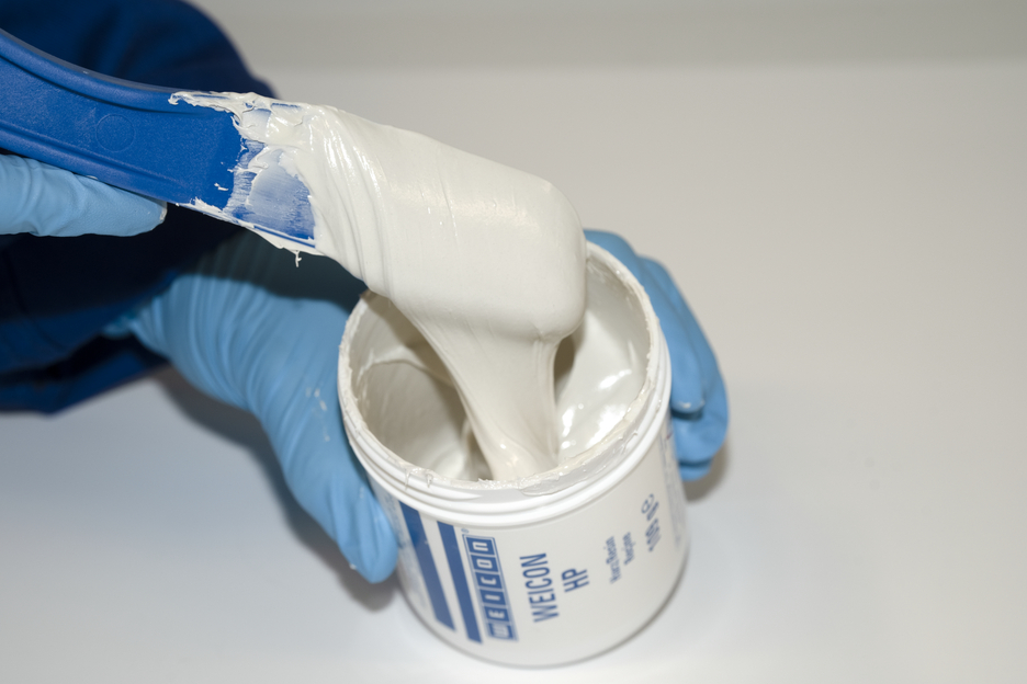 WEICON HP is a 2-component epoxy resin with longer curing time, enormous impact strength as well as high residual elasticity and abrasion resistance. Due to its high elongation at break and paste-like texture, WEICON HP can be used for repairs, as abrasion protection as well as for lining heavily stressed equipment. The adhesive also shows excellent adhesion to wet and damp surfaces and in underwater applications.