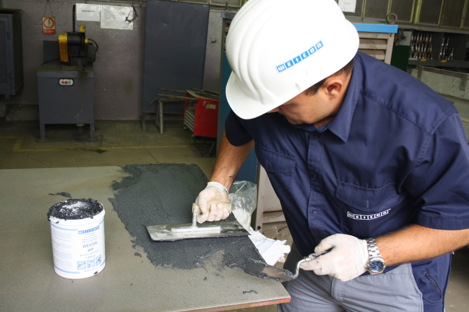 WEICON WP serves as protection for highly stressed surfaces. A coating with the epoxy resin system offers high strengths against wear and abrasion and is extremely resistant to chemicals. Plastic Metal WEICON WP prevents metal loss and replaces previously applied wear-resistant alloys, ceramic tiles and rubber linings as well as welded metal coatings. It can be used either for the regeneration of worn metal surfaces or as a wear-resistant coating. A particularly high level of protection is achieved when the wear is caused by particles hitting sideways.