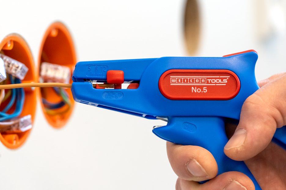 automatic wire stripper for all common stranded and solid conductors (0.2 – 6.0 mm²) I very easy to operate I precise working thanks to adjustable length stop (5 - 12 mm)