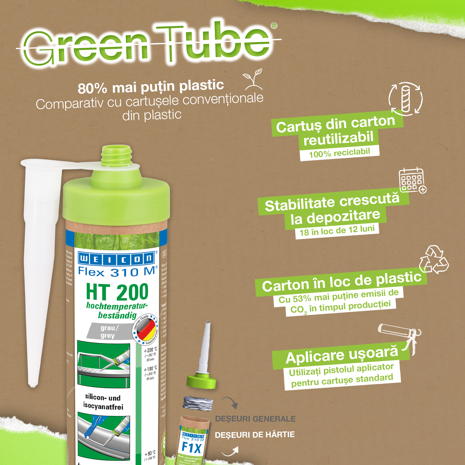 Die hohe Temperaturbeständigkeit ermöglicht das Verkleben und Abdichten von Bauteilen, die anschließend thermolackiert (pulverbeschichtet) werden sollen. WEICON Flex 310 M HT 200 kann im Metallbau, im Behälter- und Apparatebau, in der Lüftungs- und Klimatechnik, im Karosserie-, Container-, Waggon- und Fahrzeugbau zum Einsatz kommen. Die Anforderungen für Schienenfahrzeuge erfüllt Flex 310 M HT 200 durch die Prüfung nach DIN EN 45545-2 R1, R7, R17 HL3. WEICON Flex 310 M HT 200 ist hochtemperaturbeständig, hat eine hervorragende Alterungsbeständigkeit und ist silikon-, isocyanat-, halogen- und lösemittelfrei.