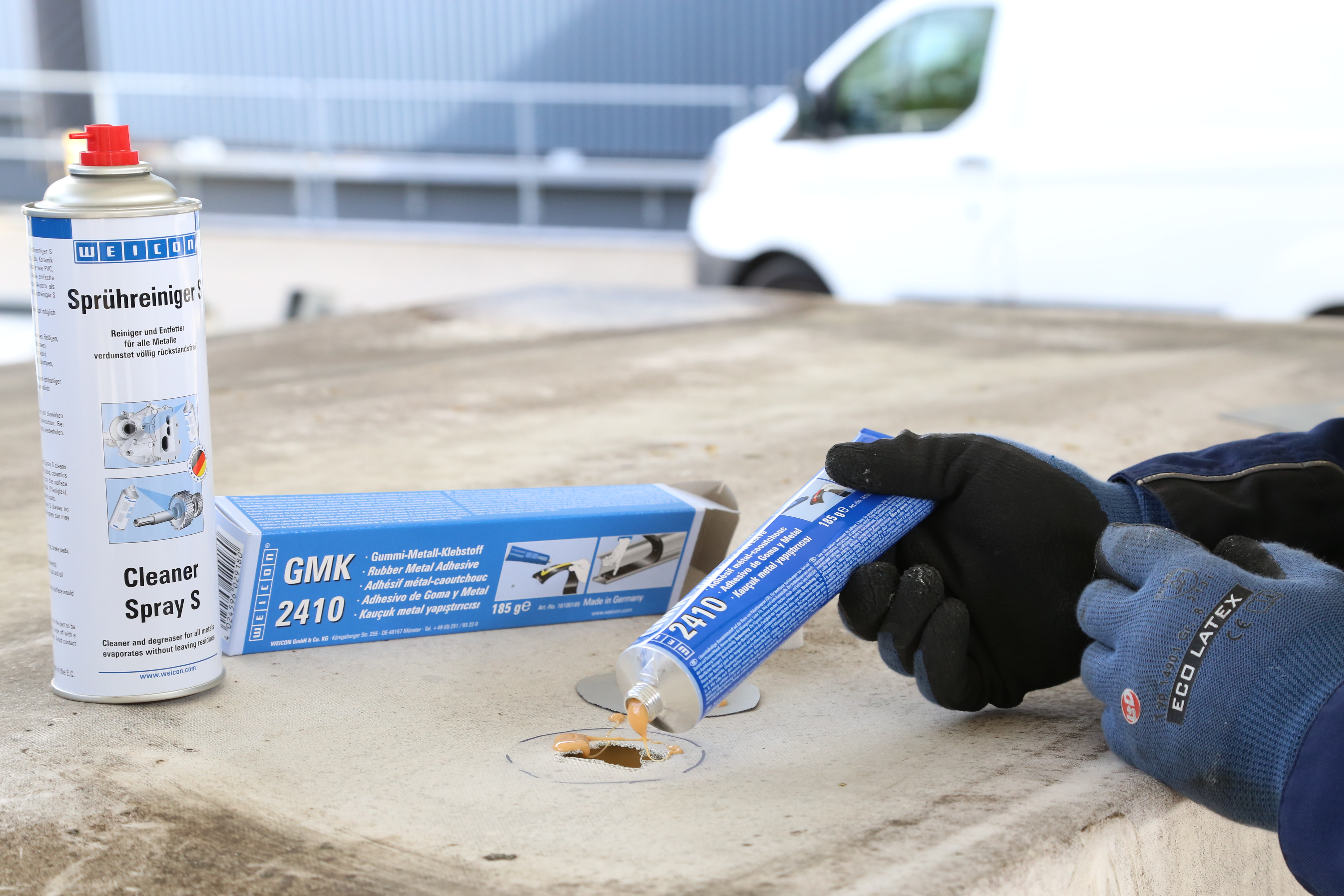 WEICON GMK 2410 ist ein Klebstoff auf Basis von Polychloropren (CR) mit einer hohen Anfangshaftung zur vollflächigen und flexiblen Verklebung von: - Gummi mit Gummi - Gummi mit Metall GMK 2410 verklebt ebenso Moosgummi, PE-Schaum, Leder, Filz, Dämmmaterialien, Textilien, Holz und viele Kunststoffe. WEICON GMK 2410 ist für Werkstoffe, wie z.B. Polystyrolschaum, Polyethylen, Polypropylenteile, PVC-Weichschaum und PVC-Kunstleder nicht geeignet.