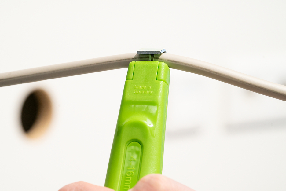 Stufenloses und einfach zu bedienendes Stellrad I selbstdrehendes Innenmesser I präzises, schnelles und sicheres Abmanteln I Arbeitsbereich 4 - 16 mm Ø