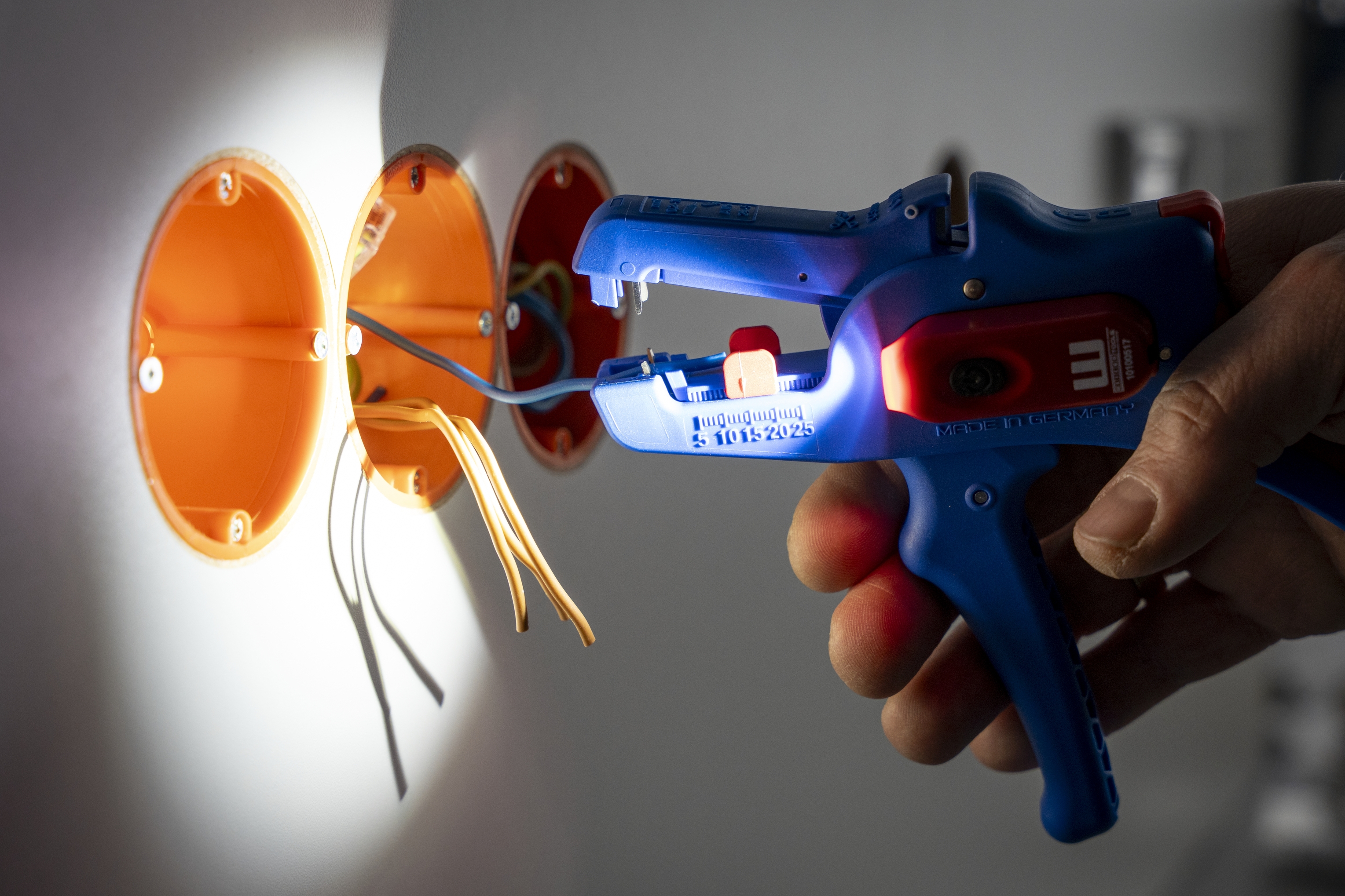 Das kleine kompakte Licht beleuchtet bei den Abisolierzangen zielgerichtet die Abisolierklingen und somit direkt den Anwendungsbereich. So leistet das Work Light auch einen Beitrag zur Arbeitssicherheit bei der Elektroinstallation. Das LED-Licht wurde speziell auf die Bedürfnisse professioneller Anwender abgestimmt und findet sowohl im Handwerk als auch in der Industrie Verwendung.
