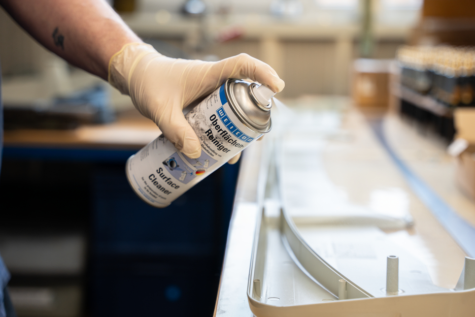 WEICON Oberflächenreiniger wird zum Reinigen und Entfetten von Oberflächen verwendet, die mit WEICON Kleb- und Dichtstoffen verklebt oder abgedichtet werden sollen. Oberflächenreiniger kann auf Werkstoffen, wie Metall, Glas, Keramik und den meisten Kunststoffen eingesetzt werden und verdunstet völlig rückstandsfrei. Vor der Anwendung auf Oberflächenverträglichkeit prüfen. WEICON Oberflächenreiniger kann ebenfalls zum Reinigen und Entfetten von Maschinenteilen im Zuge von Wartungsarbeiten genutzt werden.