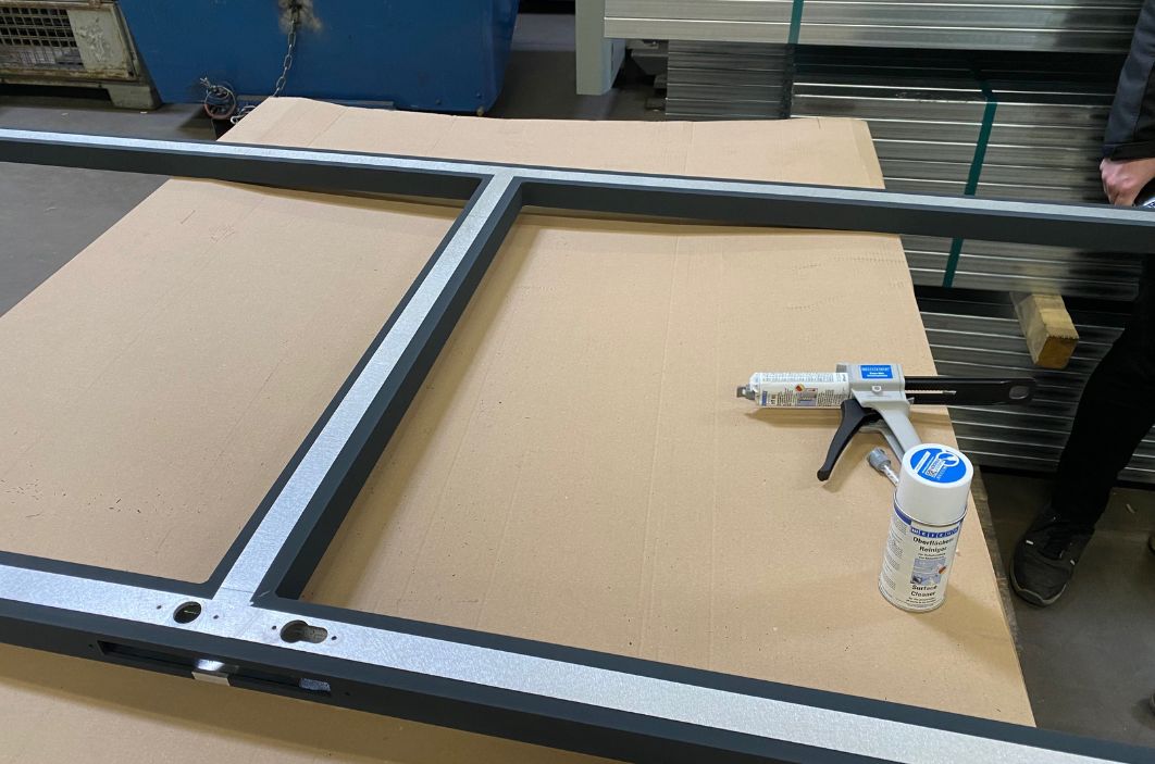 ► für das neue Design eines Tores wurde ein Klebstoff gesucht, der für die Materialkombination Alu-Alu geeignet ist