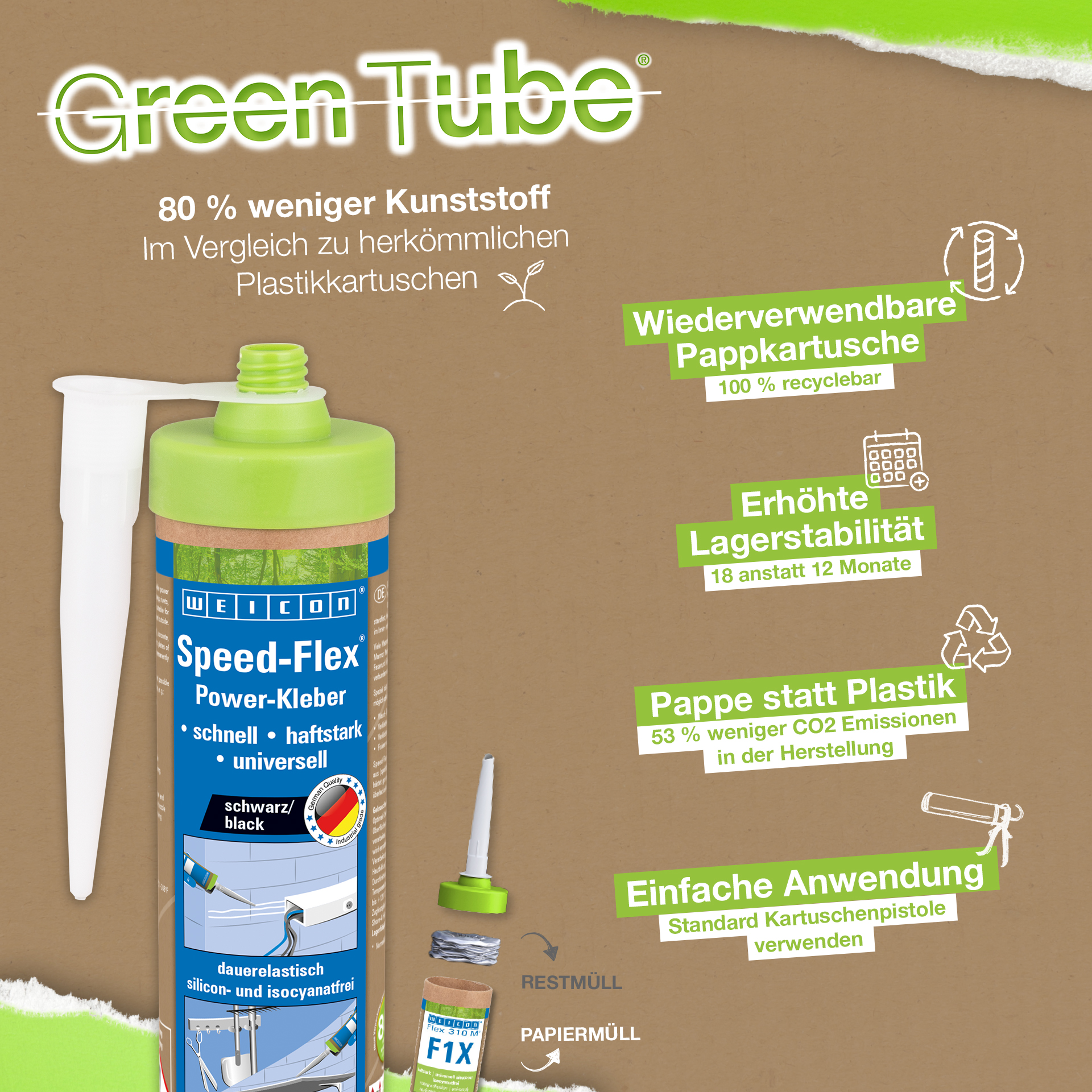 Speed-Flex ist haftstark, pastös, standfest, „nass in nass“ überlackierbar, alterungsbeständig, witterungsbeständig, UV-beständig und silikon-, isocyanat-, halogen- und lösemittelfrei. Speed-Flex ist ISEGA zertifiziert und kann als Klebstoff in der Lebensmitteltechnologie verwendet werden. Der Kleb- und Dichtstoff hat eine MS-Polymer-Basis und verfügt über eine extrem starker Anfangshaftung und eignet sich für Verklebungen von Metallen, vielen Kunststoffen, Keramik, Holz, Glas und Stein. Speed-Flex ersetzt herkömmliche Befestigungen, wie Schrauben, Dübel, Nieten etc. Durch die sehr hohe Anfangshaftung sind Verklebungen selbst an senkrechten Flächen im Innen- und Außenbereich möglich. Das Produkt kann im Trocken- und Innenausbau, im Metallbau, im Behälter- und Apparatebau, in der Lüftungs- und Klimatechnik, im Messe- und Ladenbau und überall dort, wo Silikone bzw. silikonhaltige Produkte nicht geeignet sind, zum Einsatz kommen.