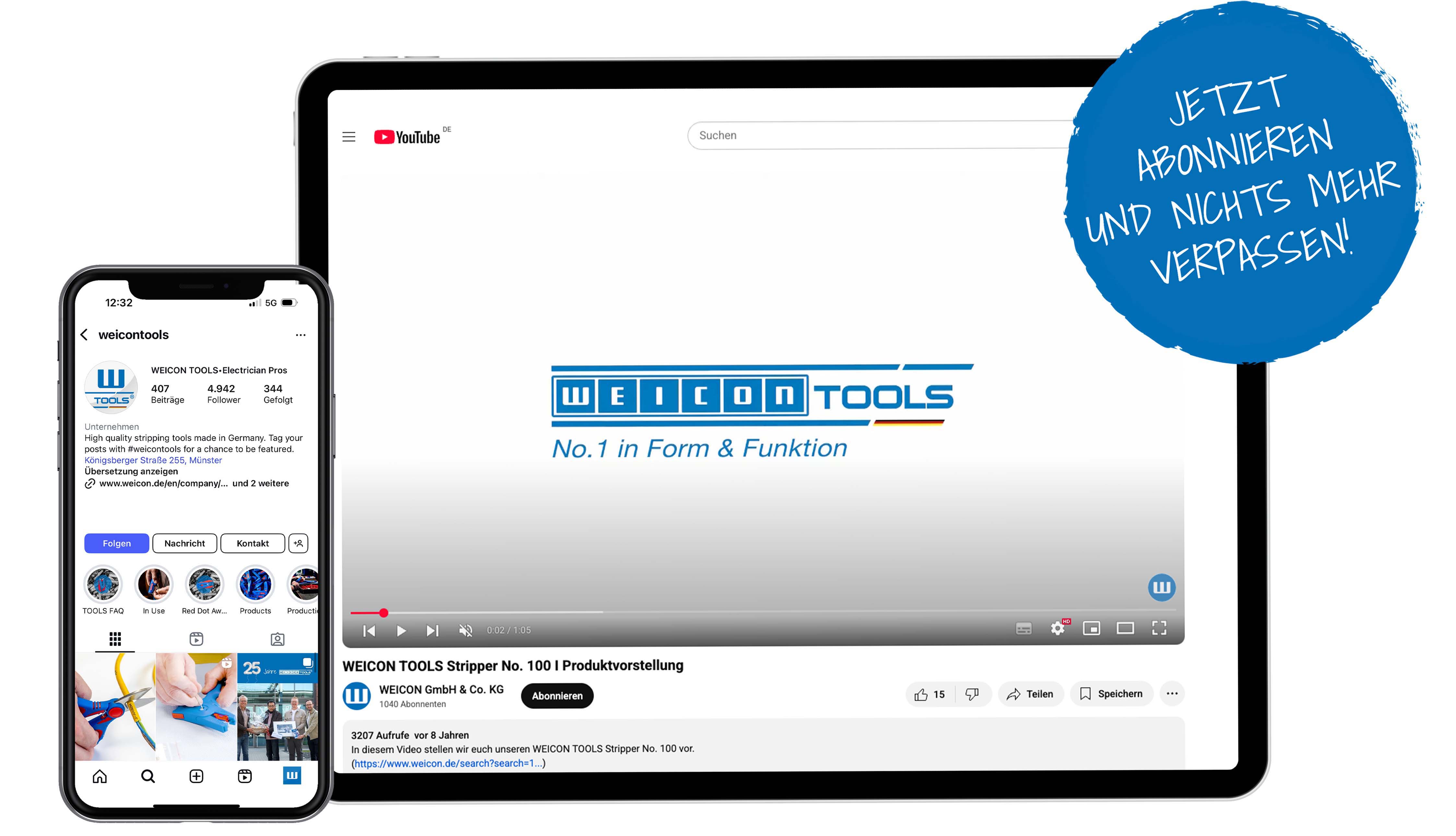 Bereits seit 1967 entwickeln, produzieren und vertreiben wir qualitativ hochwertige Abisolierwerkzeuge. Wir bieten ein breites Sortiment an Kabelmessern, Abisolierzangen, Entmantelern, Multifunktions-Abisolierern, Werkzeugen für die Solarindustrie, Spezialwerkzeugen, Crimpzangen, Sets und Abisolierwerkzeugen, die aus bis zu 97% nachwachsenden Rohstoffen bestehen. Diese Werkzeuge präsentieren wir jährlich auf mehr als 40 Messen rund um die ganze Welt. Auf diesen Events kommt es zum direkten Austausch mit Anwender*innen, die uns von Neuerungen in ihren Arbeitsprozessen berichten und so Anregungen und Wünsche für neue oder verbesserte WEICON TOOLS geben.