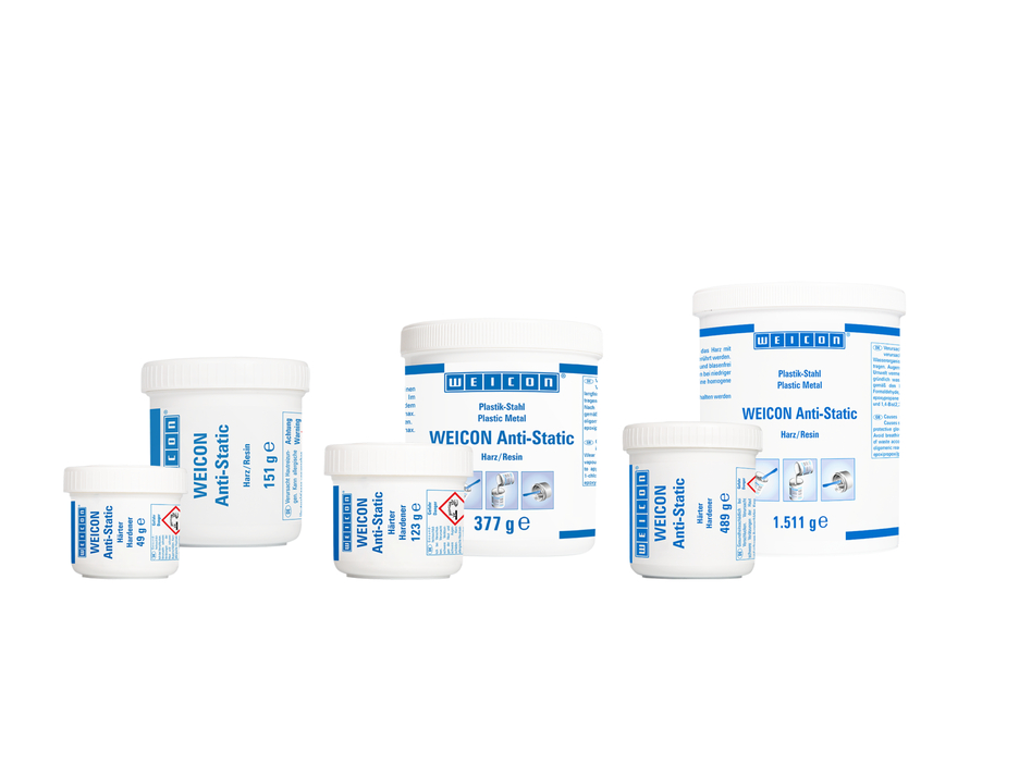 WEICON Anti-Static ist ein flüssiges, antistatisches 2-K Epoxidharz-System mit einem hohen Anteil feiner keramischer Füllstoffe. Das Beschichtungssystem unterdrückt elektrostatische Aufladung, verhindert Staubansammlungen sowie elektrische Felder in explosionsgefährdeten Umgebungen. Anti-Static wurde speziell für die Verarbeitung mit einer Niederdruckanlage entwickelt. Das System verfügt über eine gute chemische Beständigkeit und eine hohe Abriebfestigkeit. Die Beschichtung haftet sehr gut selbst unter Vibration und Dehnung auf den verschiedensten Oberflächen und ist ablauffest. Anti-Static ist frei von Teer und Lösemitteln und härtet nahezu schwundfrei aus. Das System eignet sich zur Beschichtung der verschiedensten Teile, wie Rohre, Container, Rührwerke, Stapelbehälter u. v. m. Es erleichtert die Lagerung und den Transport von brennbaren Gütern. WEICON Anti-Static kann in vielen Bereichen der Industrie eingesetzt werden, wie der Chemieindustrie, Elektromobilität, Halbleiterindustrie, Instandhaltung / Reparatur, im Maschinen- und Anlagenbau, Pharmaindustrie oder in der Verpackungsindustrie. WEICON Anti-Static eignet sich in Kombination mit einem der anderen WEICON Plastik-Stahl Typen für einen Systemaufbau als antistatisches Oberflächenfinish.