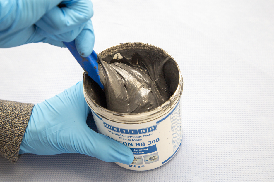 WEICON HB 300 ist pastös, stahlgefüllt und hochtemperaturbeständig bis +200 °C (392 °F) (kurzfristig bis +280 °C/536 °F) und wird in einem Mischungsverhältnis von 1:1 verarbeitet. Das Epoxidharz-System ist auch für eine Verarbeitung an senkrechten Flächen geeignet und kann für Reparaturen und Verklebungen an Guss- und Metallteilen, zum Füllen von Lunkerstellen, zum Ausbessern von Beschädigungen an Behältern, Karosserien und Maschinenteilen und zum Abdichten von Pumpen und Rohren verwendet werden. Das Produkt kann im Maschinen- und Anlagenbau, im Apparatebau sowie in vielen weiteren Bereichen der Industrie zum Einsatz kommen.